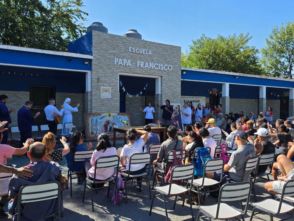 En esta línea, también se realizó una visita al Centro Educativo Papa Francisco y el Centro de Día San Juan de Dios al que asisten jóvenes y adultos con diferentes necesidades de atención en salud mental. Este último, brinda un espacio de asistencia educativa, socio sanitaria y, recreativa, y es parte de un Conjunto de Servicios Comunitarios que la Diócesis de San Justo desarrolla, en el predio Colonia Mi Esperanza de la localidad de Isidro Casanova, Partido de La Matanza. Durante el encuentro se entregaron presentes institucionales y un cuadro de San Juan de Dios, como gesto de acompañamiento, esperanza y pertenencia.
